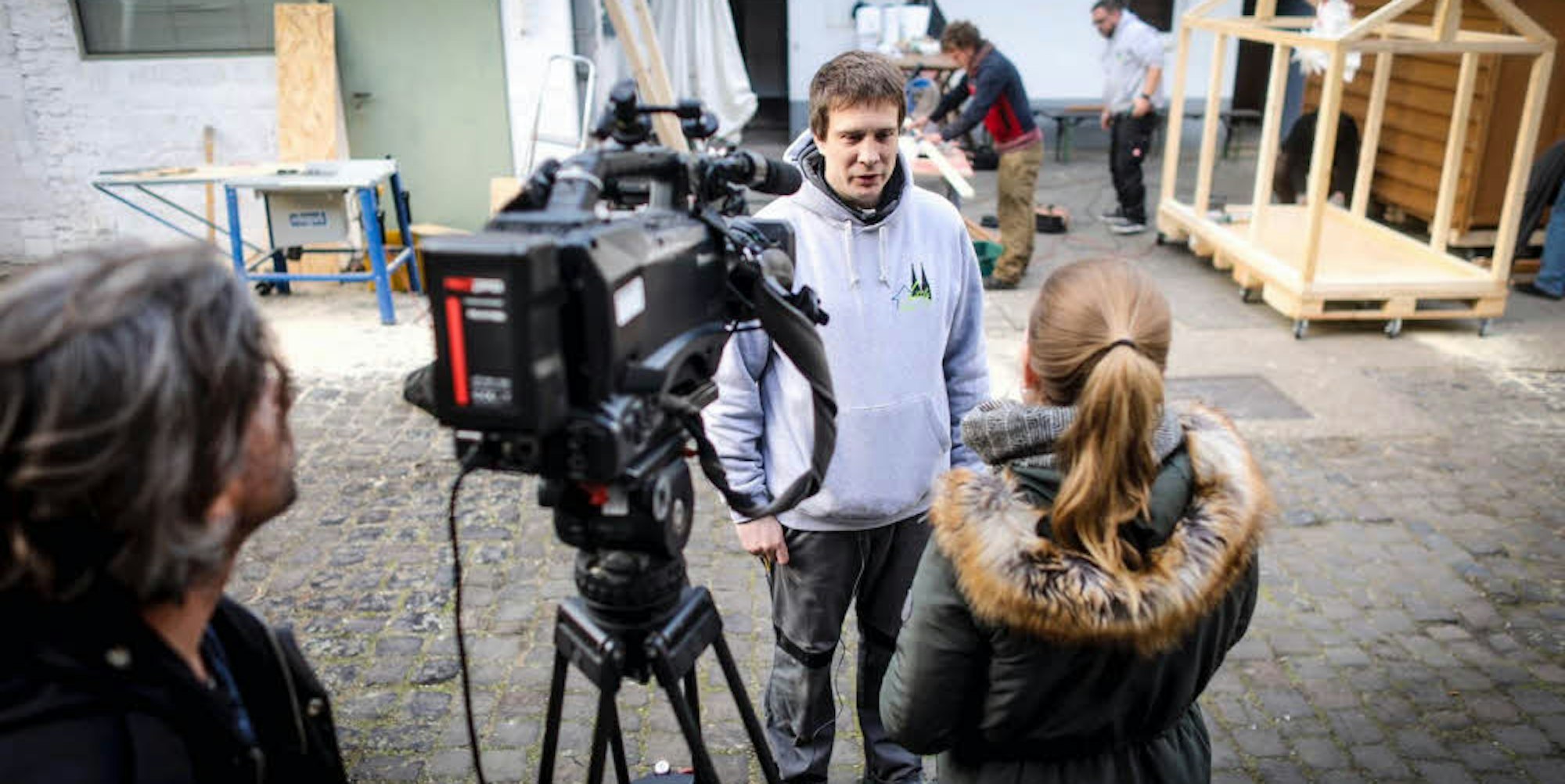 Das chinesische Staatsfernsehen interviewte den Wohnbox-Bauer Sven Lüdecke.