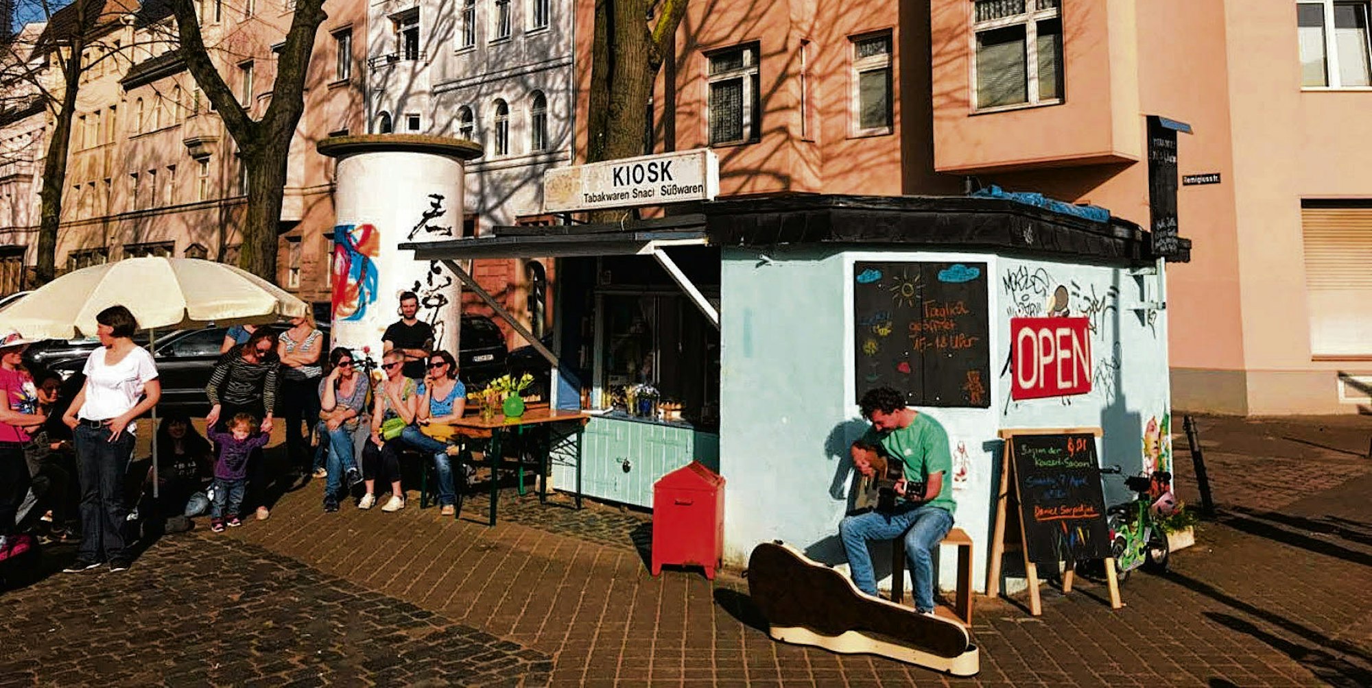 Auch die neuen Büdchenbetreiber gründen gerade einen Verein. „Angefangen hat es damit, dass Nachbar Martin Gubelt in seiner Freizeit das Büdchen aufgemacht und eine Kaffeemaschine aufgestellt hat, um für die Besucher des Kinderspielplatzes einen guten Kaffee zu kochen", erzählt Julia Krakau. Die türkisfarbene Verkaufsstelle für Getränke und Süßigkeiten entwickelte sich schnell zum Veedelstreff. Da der Betrieb viel Zeit erfordert, teilten sich im Laufe der Zeit immer mehr Menschen neben ihren Berufen den Büdchenjob.