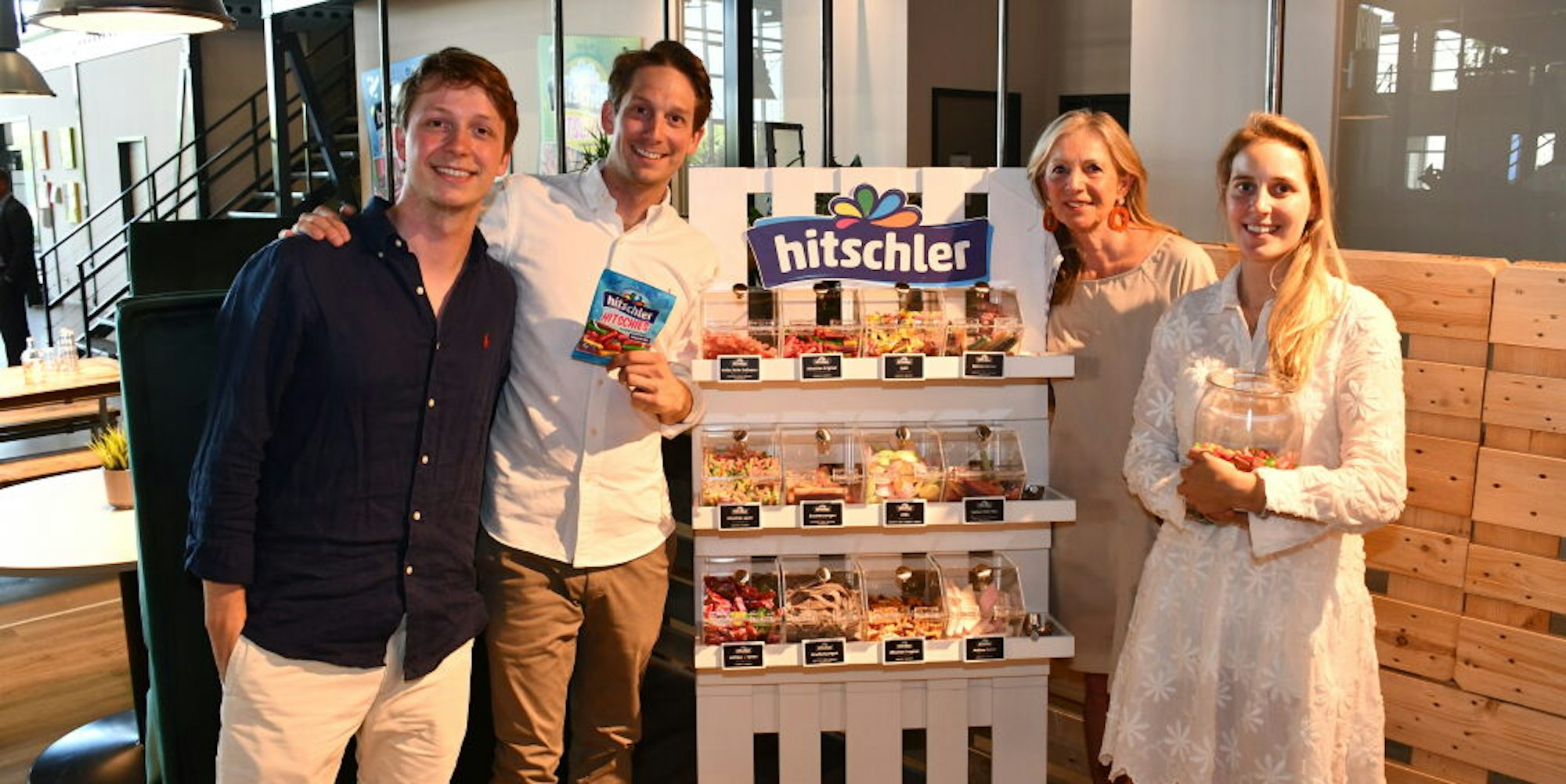 Natürlich gibt es in der Firmenzentrale eine Candybar, an der sich die Mitarbeiter wie am Büdchen Brause-Ufos, Fruchtgummis und „Hitschies“ – dragierte Kaubonbons, das Urprodukt von Hitschler – in Tütchen packen können. 100 verschiedene Süßigkeiten hat Hitschler im Programm, vertrieben werden sie weltweit in mehr als 30 Ländern. Produziert wird seit den 1950er-Jahren in Michelstadt im Odenwald, dort beschäftigt Hitschler weitere knapp 100 Mitarbeiter.