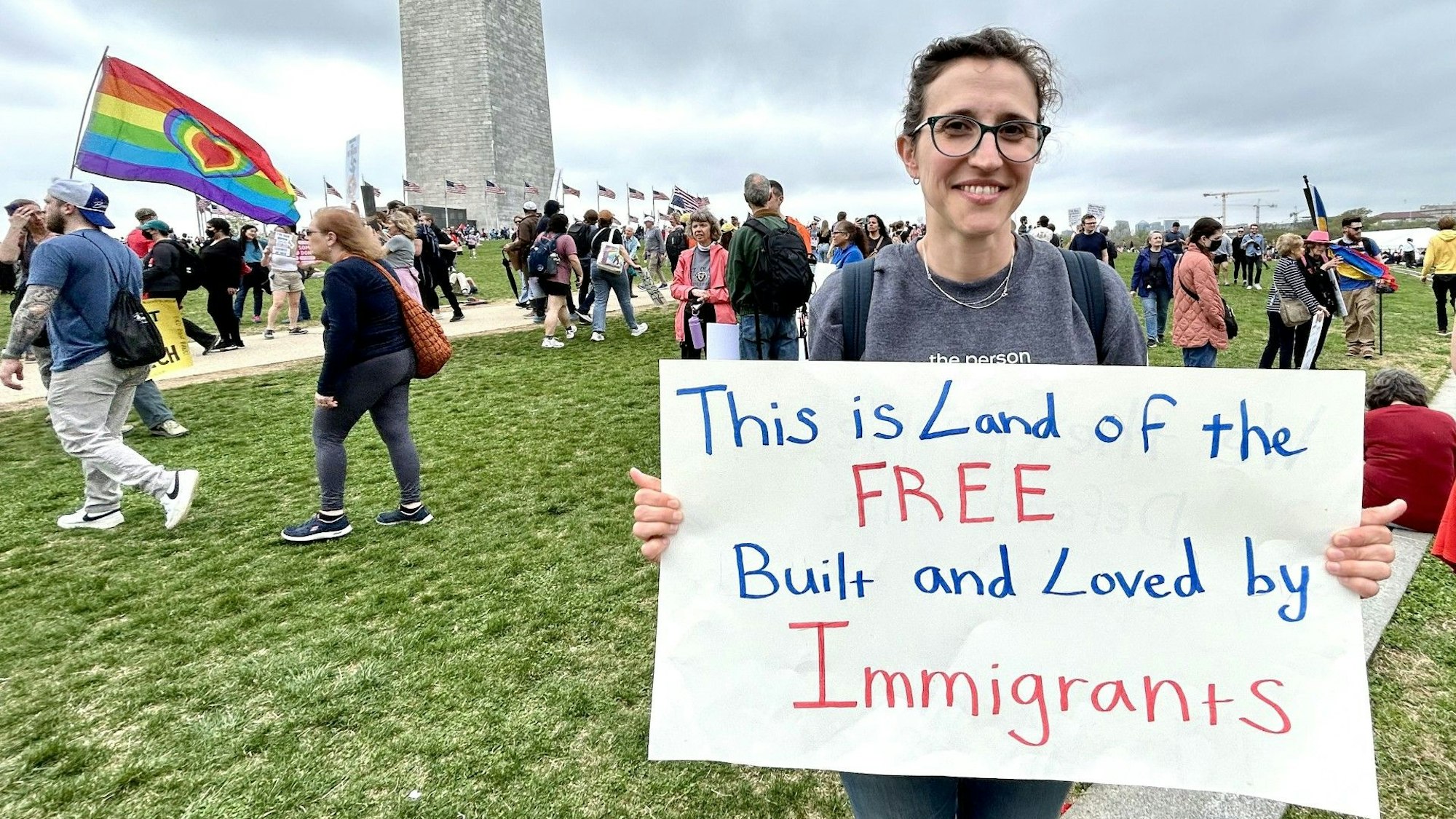 Also ist Kalin an diesem grauen Samstagmorgen drei Stunden von Philadelphia nach Washington gefahren, wo sie nun mit einem Plakat steht: „This is the Land of the Free. Built and Loved by Immigrants“ (Das hier ist das Land der Freien. Es wurde von Migranten aufgebaut und geliebt) steht darauf. Kalins Mutter ist vor vielen Jahrzehnten aus Spanien in die USA eingewandert. Beide haben die amerikanische Staatsbürgerschaft.