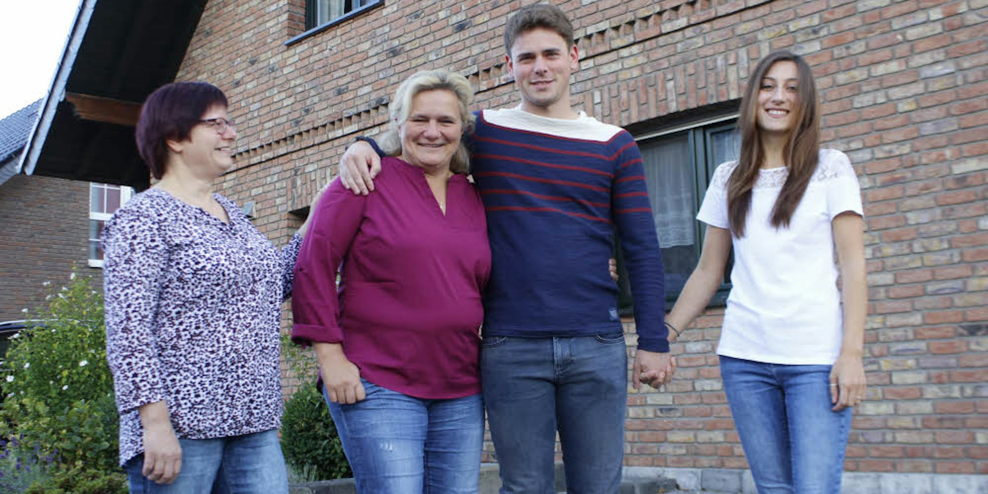 Dem 24-jährigen Jan Strick geht es wieder gut – trotz eines erlittenen Herzstillstands. Christine Strick (l.) und Nachbarin Daniela Kratz (2.v.l.) reanimierten ihn, als Freundin Michela Moranelli (r.) bemerkt hatte, dass ihr Freund nicht mehr normal atmete.