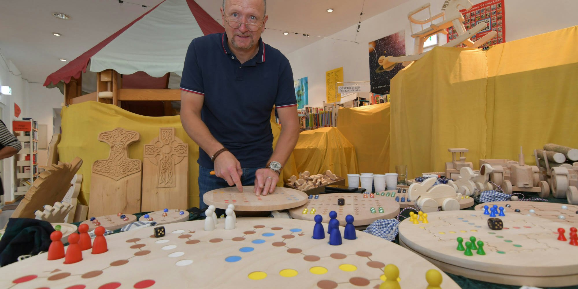 Michael Sulzbacher aus Burscheid hat den Beruf des Schreiners gelernt und fertigt Spiele und Spielzeug.