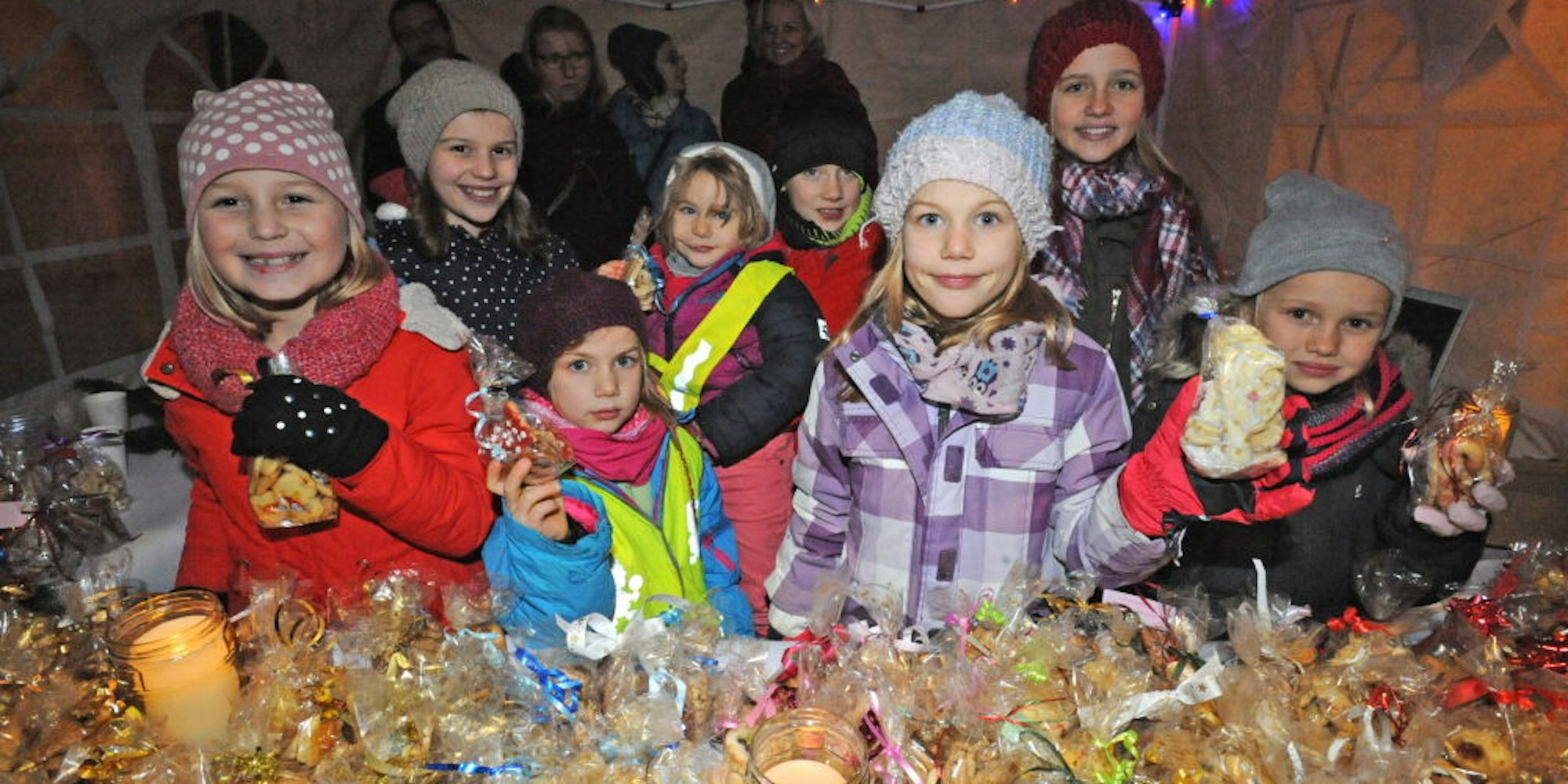 Kekse verkauft, um Senioren zu verschenken: Die Grundschüler der KGS auf dem Bratapfelfest.