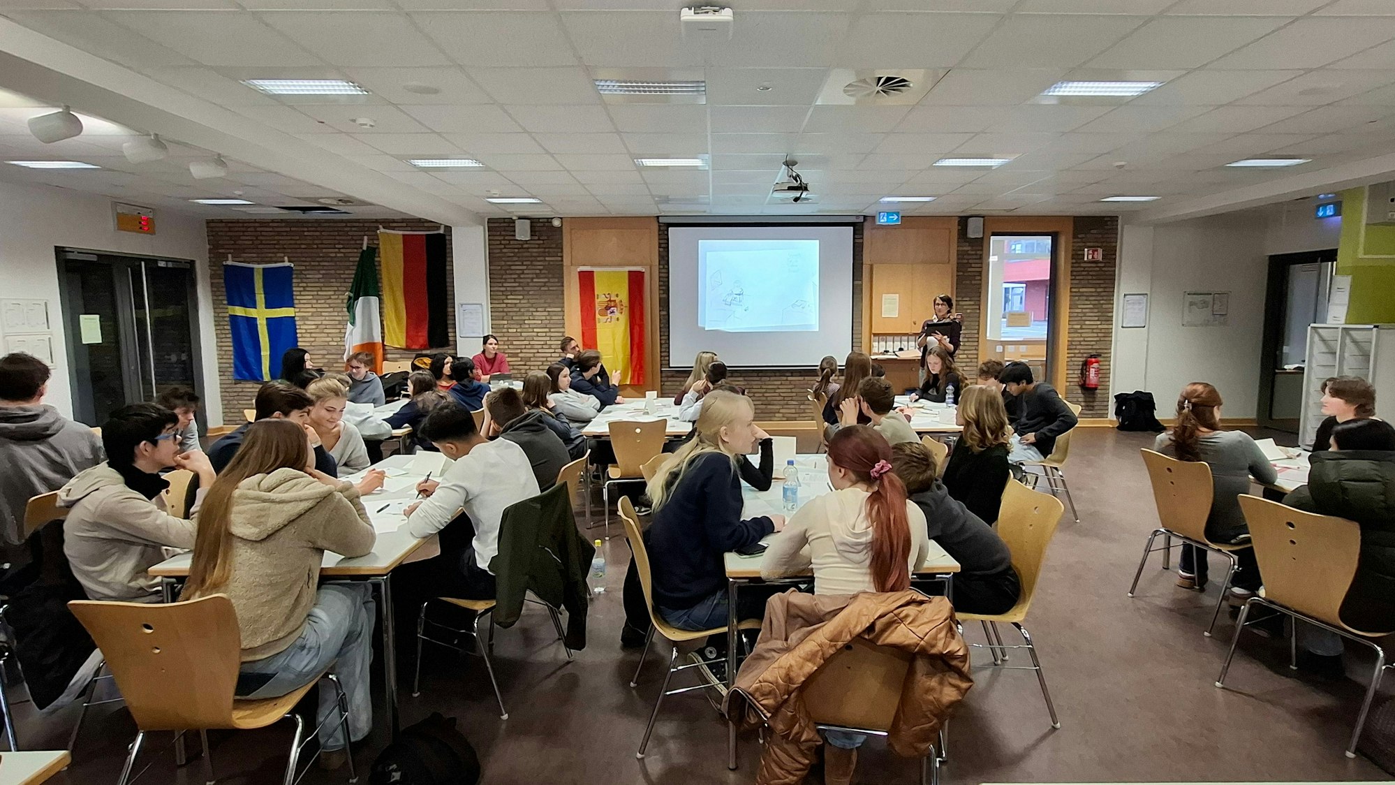 Schülerinnen und Schüler des Erasmus-Projekts in der Mensa im Landrat-Lucas-Gymnasium