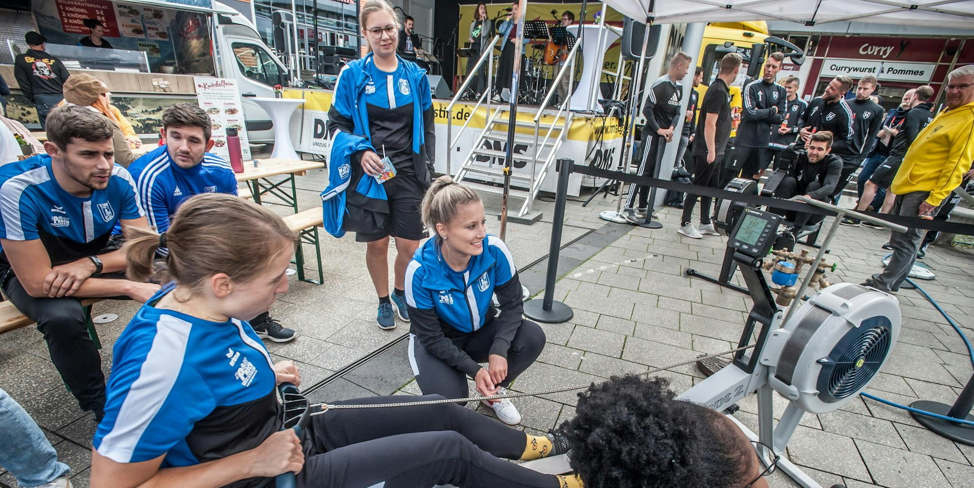 Spenden sammeln an der Rudermaschine war ein Programmpunkt auf dem Rathausvorplatz.