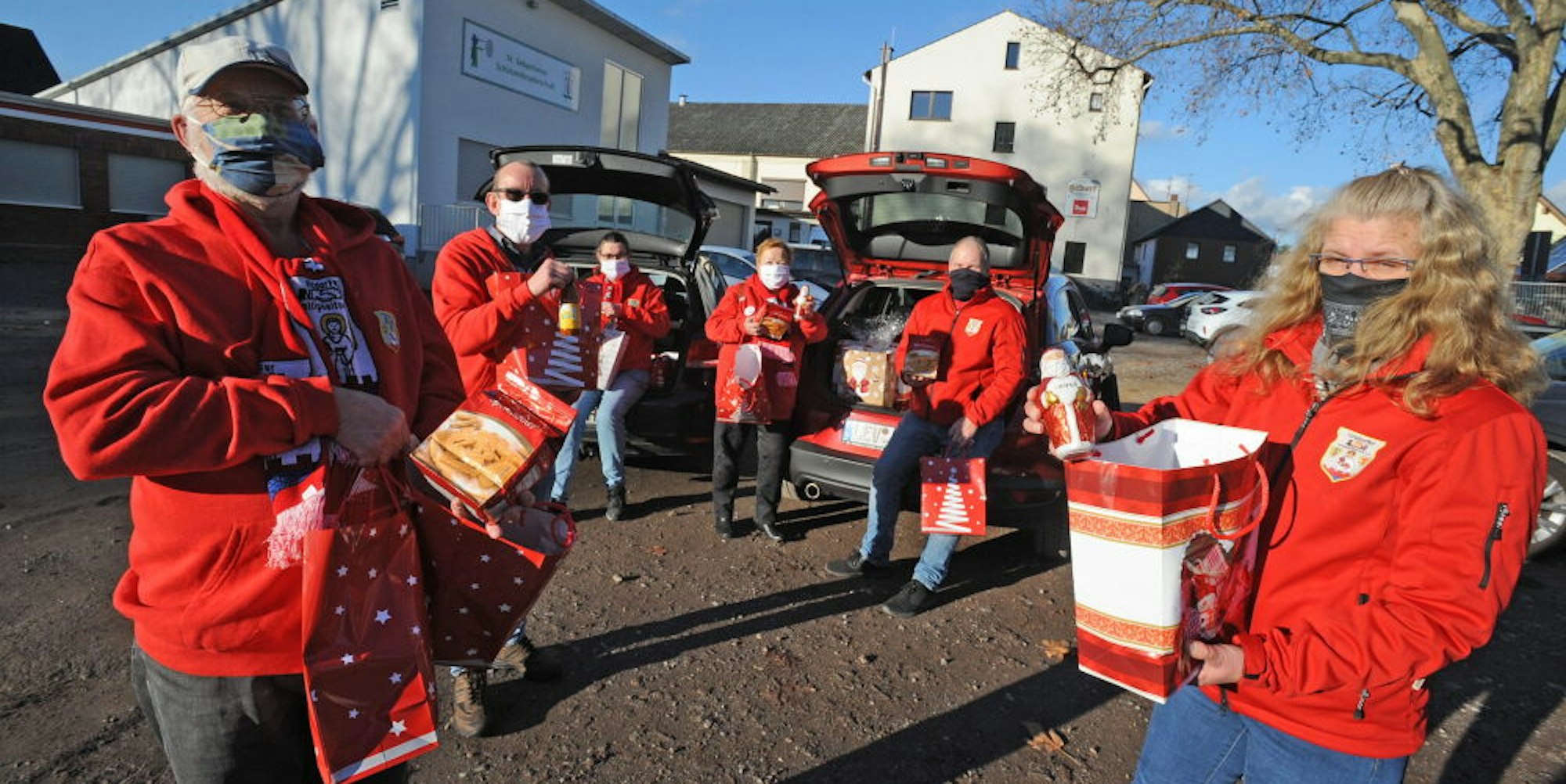 „Wir haben dieses Jahr nur Verluste gemacht“, erzählt Siggi Kleinschmidt, Vorsitzender des Vereins. „Aber wir wollten auch nicht betteln gehen. Die Sponsoren und Geschäftsleute haben es ja derzeit selber schwer.“ Mit den zusammengekratzten Mitteln war es den Ehrenamtlichen möglich, 85 Tüten zu befüllen. Es mussten also ebenso viele Senioren ausgelost werden, die dann das Glück hatten, mit einer der Tüten beehrt zu werden. Drin sind für jeden Sekt, Tee, weitere Köstlichkeiten und natürlich die namensgebende Packung Spekulatius. Dazu kommt – ein 2020er-Dauerbrenner – eine Atemschutzmaske. Diese wurden von Christian und Sandra Göres genäht, der Karnevalstruppe des Vereins, die sonst um diese Zeit an den Kostümen für die Session sitzen würden.
