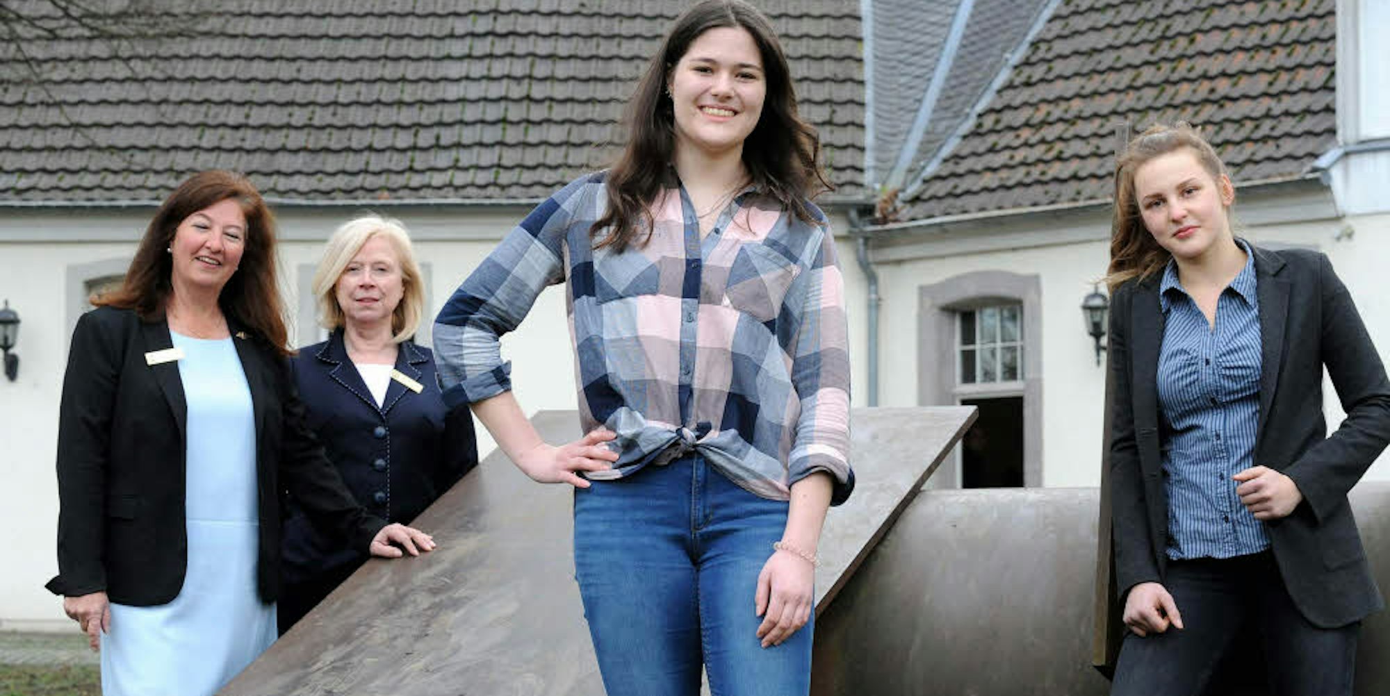 Yvonne-Vera Hageleit-Schreckenberg und Petra Schmidt von „Zonta“, YWPA-Gewinnerin Nele Mai und Tatjana Schroer (v.l.): Der Preis soll junge Frauen für gesellschaftliches Engagement und Führungsaufgaben ermutigen.