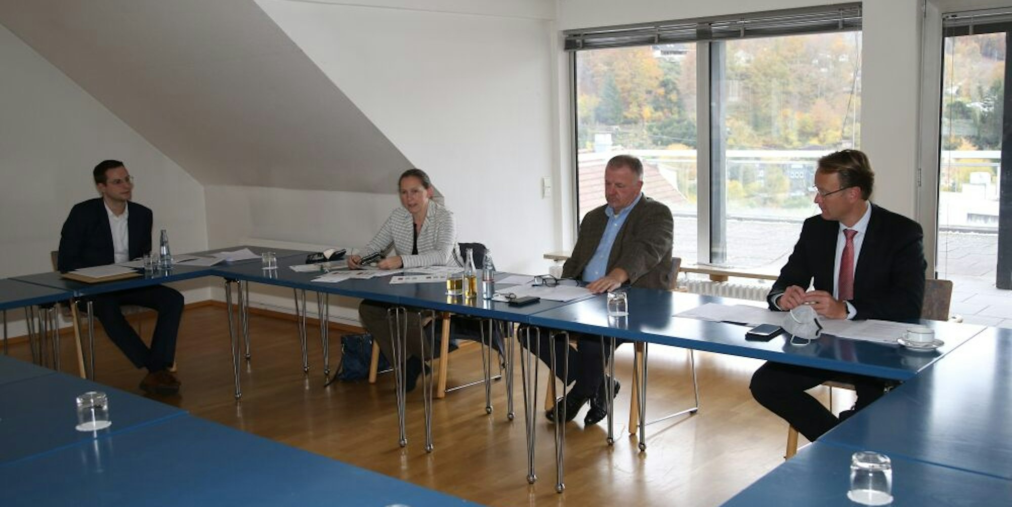Johannes Juszczak (IHK Köln, v.l.), Nicole Jordy (Agentur für Arbeit Bergisch Gladbach), Michael Sallmann (IHK-Geschäftsstelle Oberberg) und Marcus Otto (Kreishandwerkerschaft) nannten Zahlen.