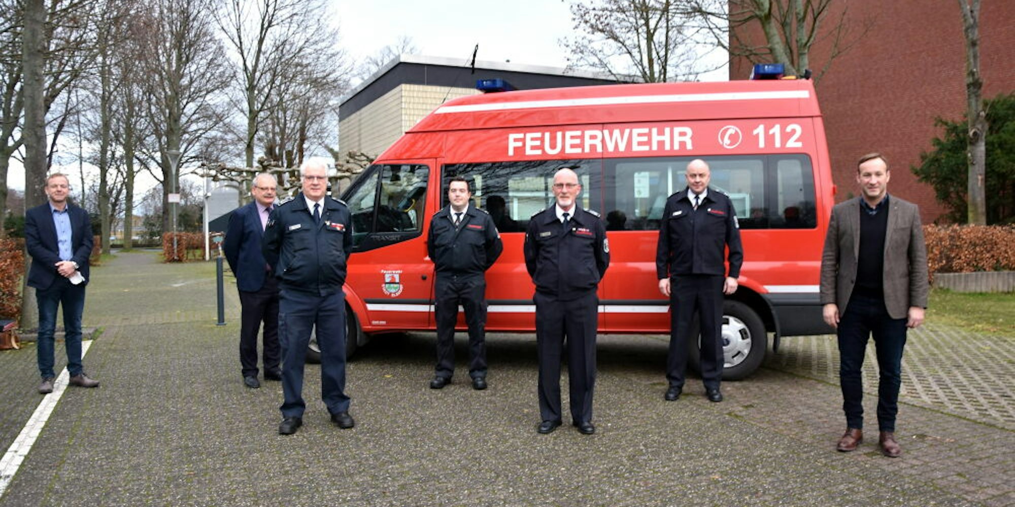 Die künftigen Leiter der Feuerwehr wurden vereidigt: Markus Grandrath, Hubert Portz, Rudolf Niephaus, Christoph Kratz, Wolfgang Lorenz, Hans-Peter Brand und Andreas Heller (v.l.).