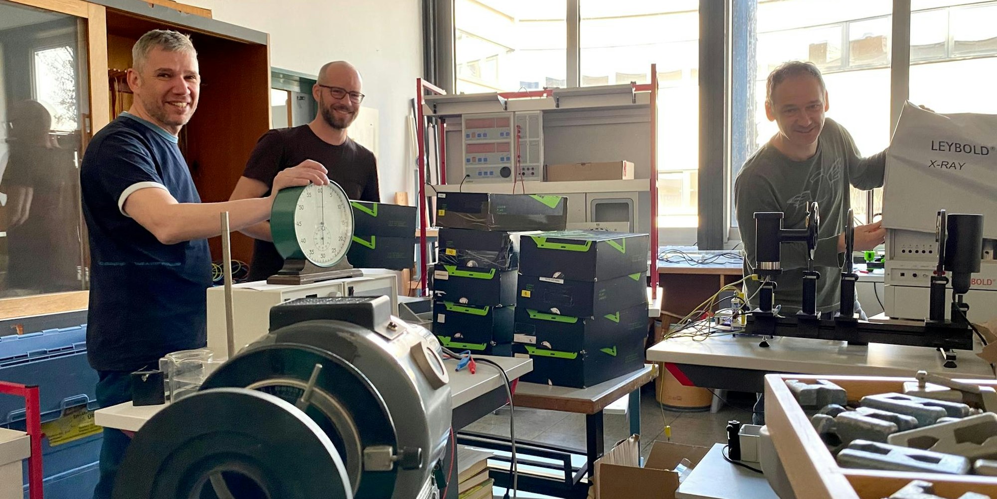 Die Physiklehrer am Ernst-Mach-Gymnasium sortieren derzeit jede Menge Altgeräte aus.