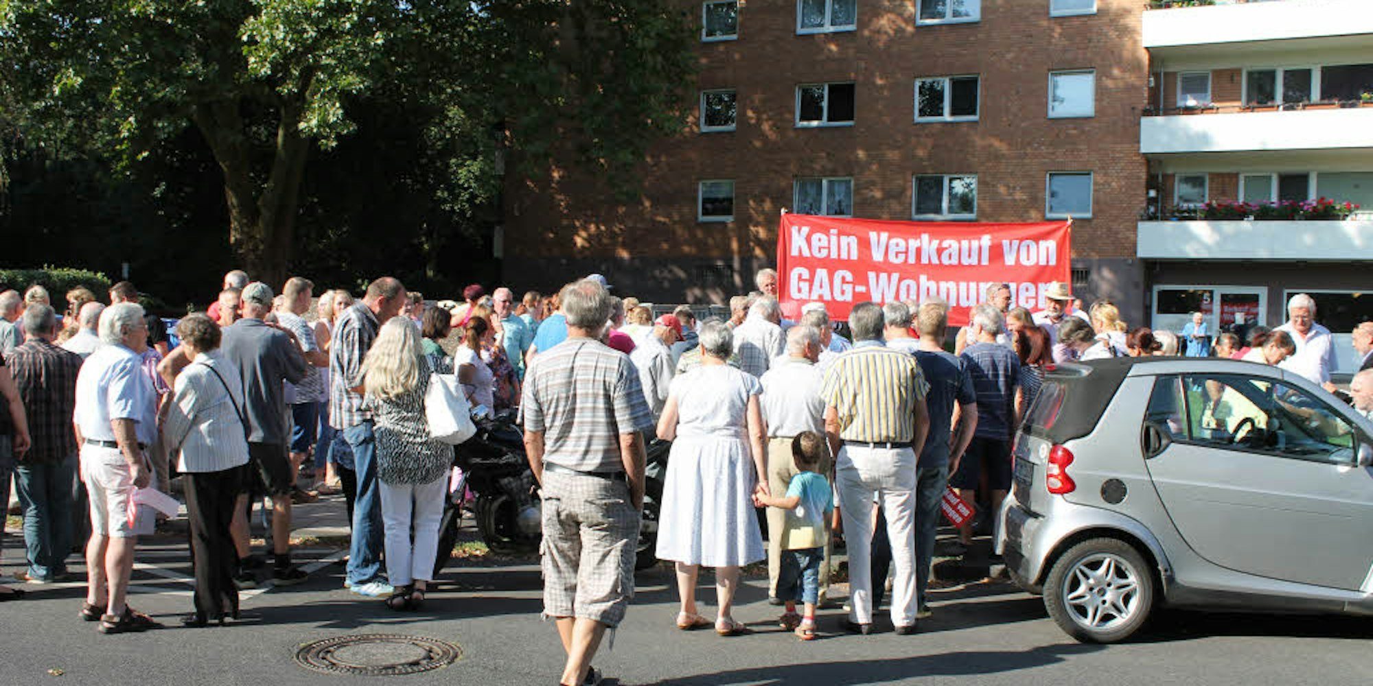 Am Samstag protestierten viele Mieter in Wesseling gegen den geplanten Verkauf der GAG-Wohnungen.