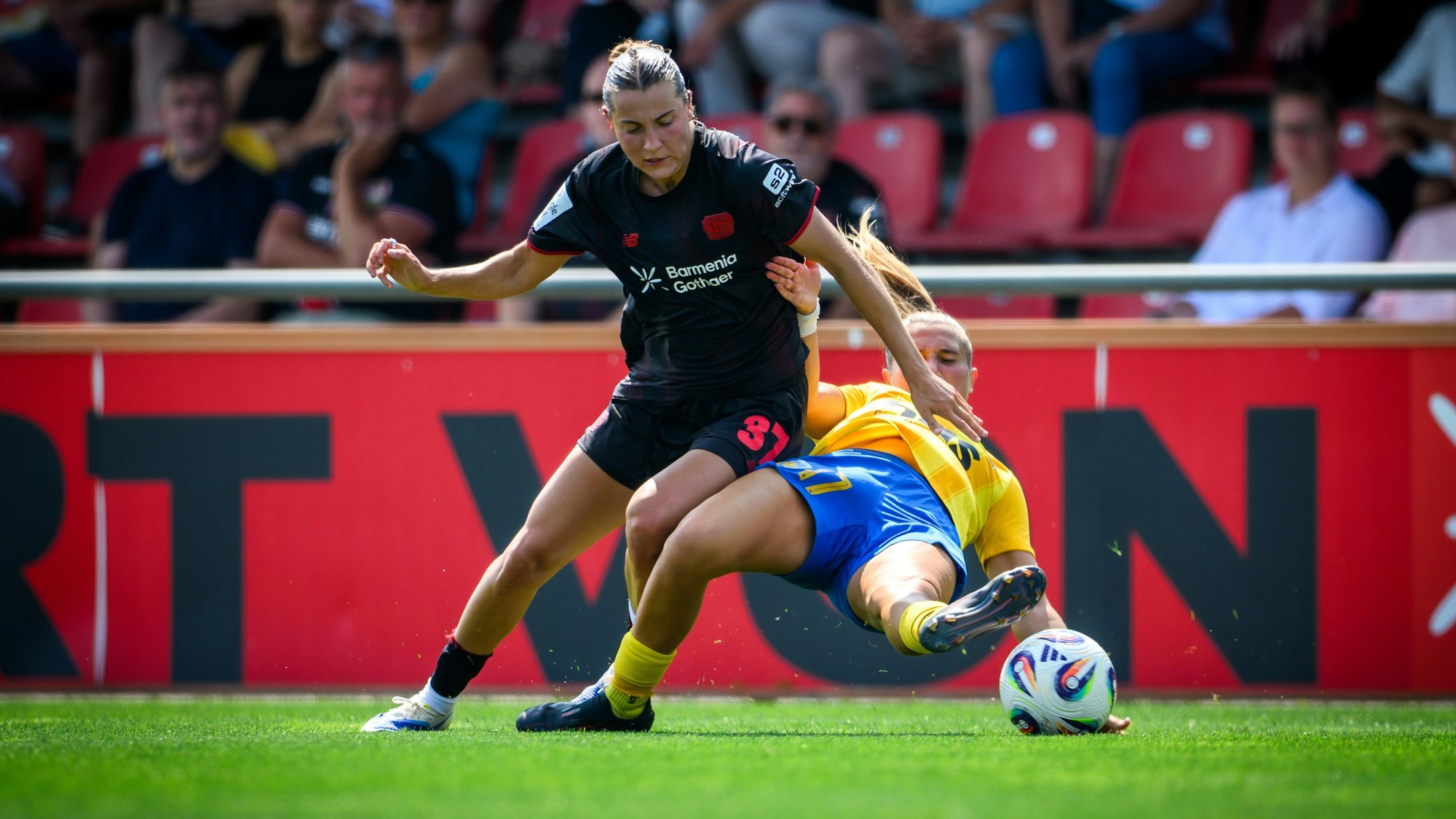Dennoch startete Bayer 04 überlegen und wurde früh belohnt: Estrella Merino Gonzalez flankte in die Mitte, wo Ruby Grant zwar den Ball verpasste, dafür jedoch Nationalspielerin Carlotta Wamser zur Führung einschoss. Kurz darauf fiel auch schon das 2:0. Erneut leistete Merino Gonzalez über rechts die Vorarbeit. Ihren Pass leitete Valentina Mädl auf Fudalla weiter, die nur noch einschieben musste (17.).