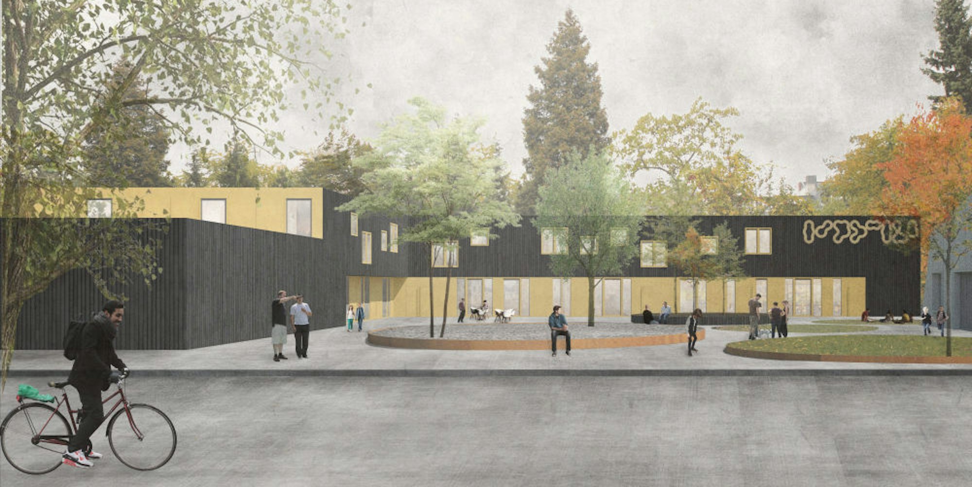 So würde das neue generationenübergreifende Bürgerhaus auf dem Gelände des Sozialen Zentrums Lino Club e.V. aussehen: Offen für Jung und Alt – zu allen Seiten.